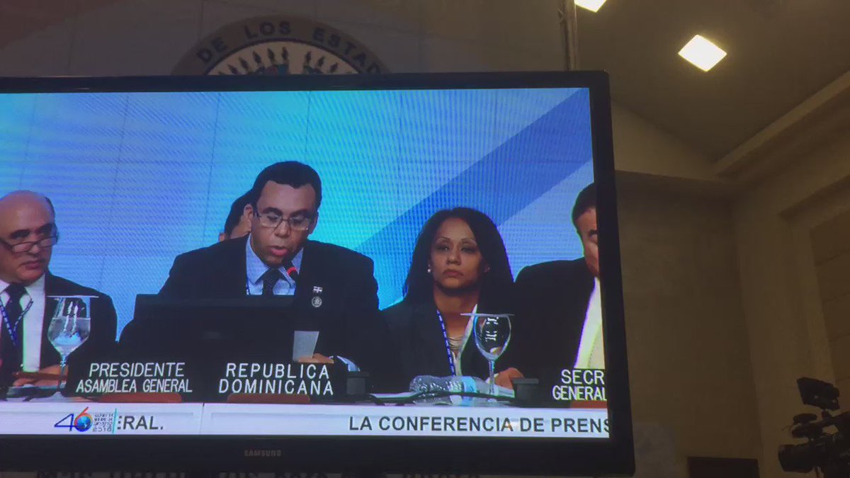 La votación se dio luego que Rodríguez hablará este miércoles al término de la 46° Asamblea General de la OEA que se efectuó en la capital de República Dominicana, Santo Domingo, durante la cual este martes pronunció un contundente e irrefutable discurso que muy probablemente fue responsable de otro histórico hecho.