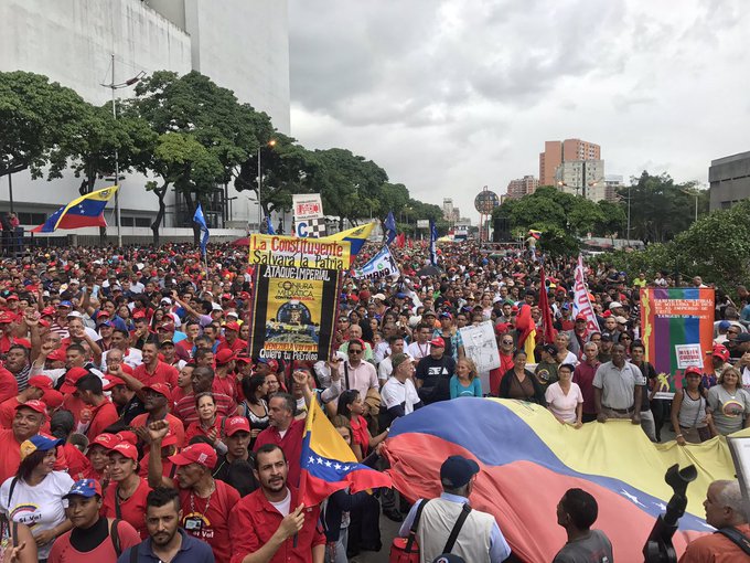 La movilización denominada Marcha Antiimperialista inició desde tempranas horas de la mañana desde la sede de la Compañía Anónima Nacional Teléfonos de Venezuela (Cantv) en la avenida Libertador, para llegar hasta el Palacio de Miraflores, donde se reunirán con el presidente Nicolás Maduro.