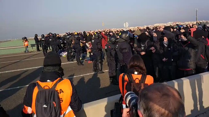 CatInfo Tgn-Ebre@Cati_Tarragona Els mossos intenten desallotjar els manifestants a l'entrada del port de #Tarragona #VagaGeneral21F
