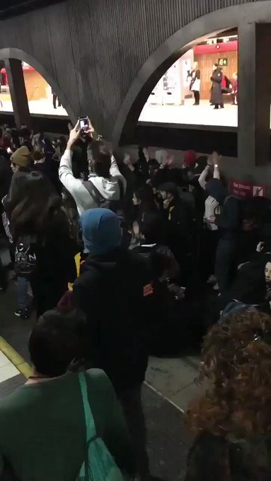 Por su parte, un nutrido grupo de manifestantes invadió también las vías de una céntrica estación de metro de Barcelona: