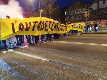Los cortes de carretera, desde primera hora de la mañana, han sido la medida de presión más recurrente en el marco de la huelga. Los activistas se manifestaban así bajo el lema 'la autodeterminación no es delito'.