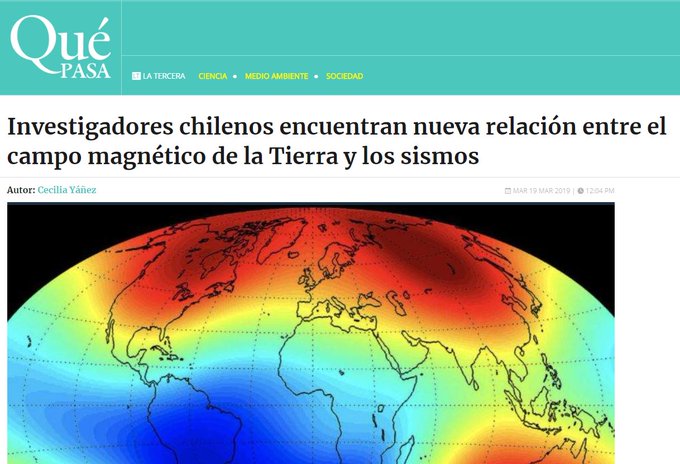 Universidad Autónoma de Chile@autonomadechile Nuestro académico e investigador, Enrique Cordaro, junto a su equipo de trabajo, encontraron una nueva relación entre el campo magnético de la Tierra y los sismos . Nota de @latercera @QuePasaCL → http://bit.ly/2CskT0N 8 16:30 - 20 mar. 2019