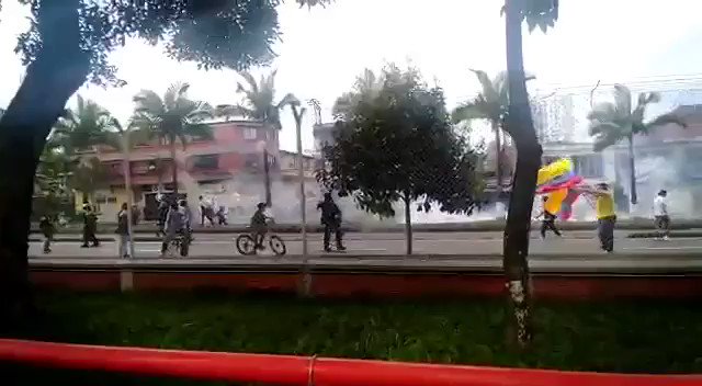En este momento movilización pacífica en Dos quebradas #Pereira es reprimida por la @PoliciaColombia hacemos un llamado a que brinden garantías para la movilización social. Protestar es un derecho