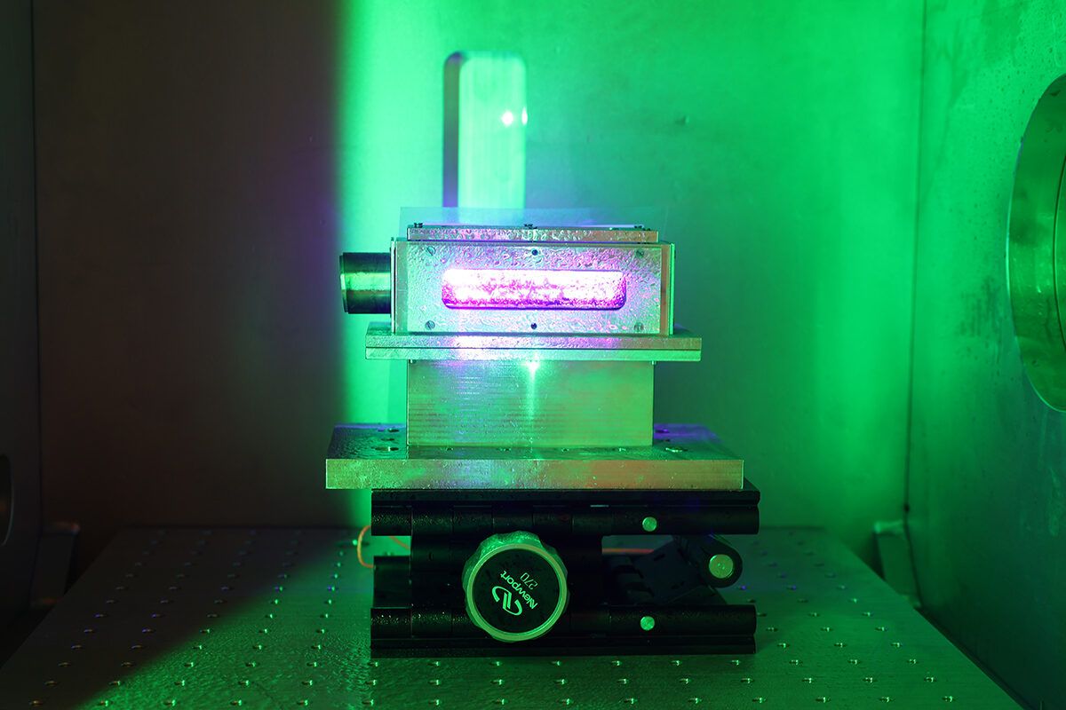 Esta celda de gas contiene un láser extremadamente potente golpea que el gas helio, lo calienta hasta convertirlo en plasma y crea ondas que expulsan electrones del gas en un haz de electrones de alta energía. / Bjorn “Manuel” Hegelich.