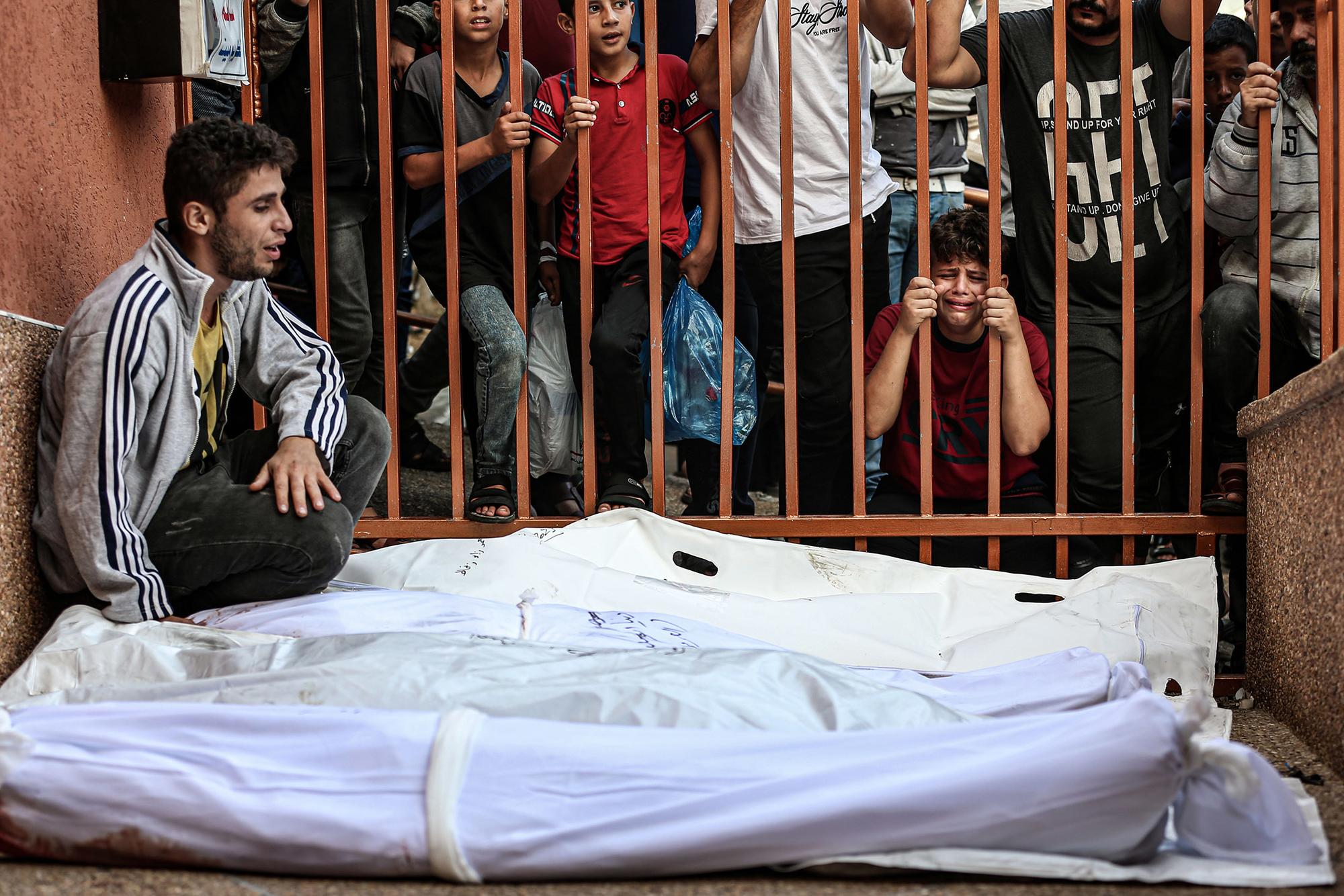 Después de otra noche de incesantes bombardeos por parte de las fuerzas coloniales israelíes, el hospital Al-Nasser en Khan Yunis está repleto de muertos y heridos, Franja de Gaza, 25 de octubre. MOHAMMED ZAANOUN/ ACTIVESTILLS (©)