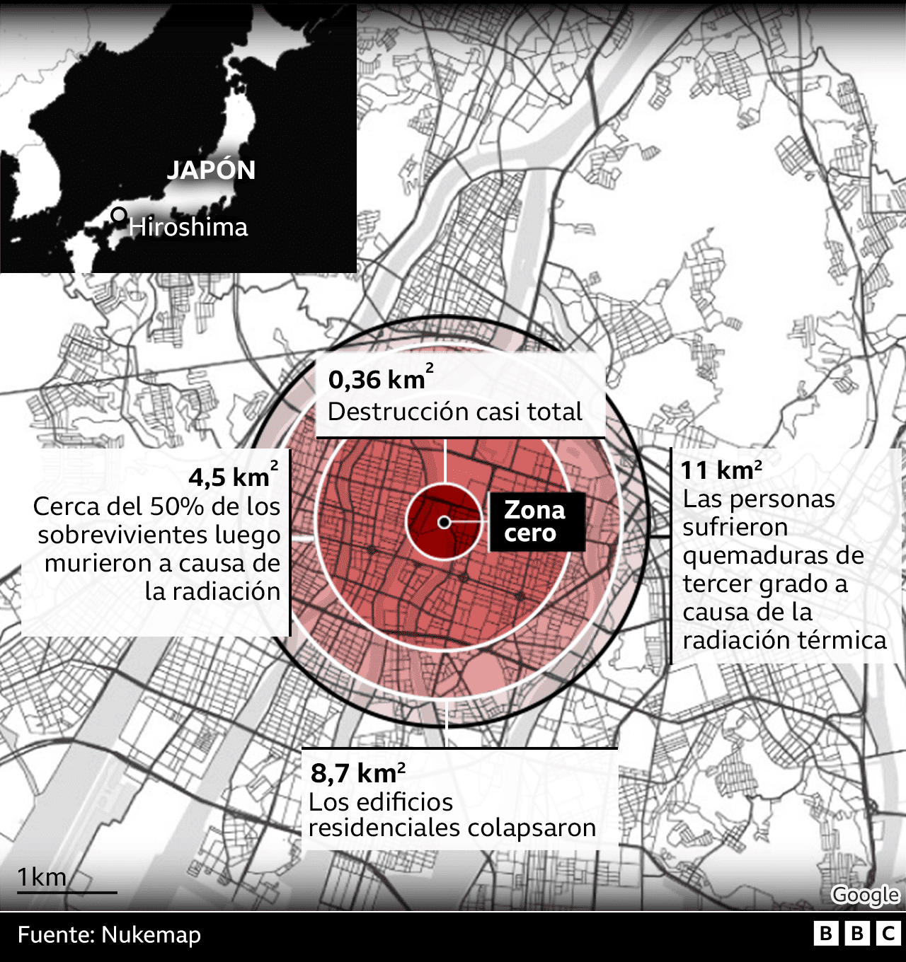 En la bomba de Hiroshima, por ejemplo, resultaron letales para el 92% de las personas que estaban en una radio de 600 metros del punto cero.
