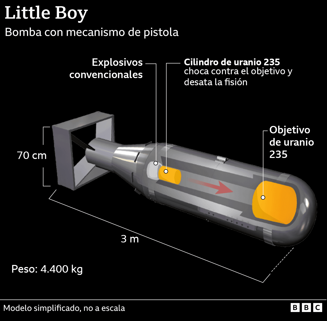 El mecanismo interno de Little Boy funcionaba como una pistola: disparaba una pieza de uranio 235 contra otra del mismo material.