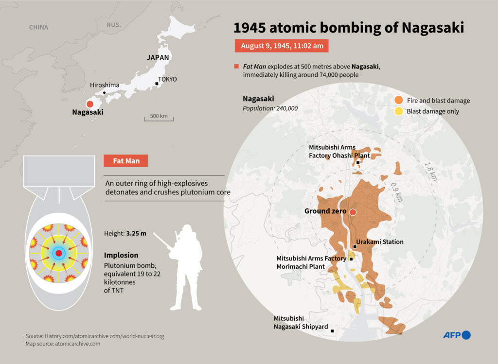Tres días después, Estados Unidos lanzó una segunda bomba, bautizada como "Fat Man", sobre la ciudad sureña de Nagasaki.