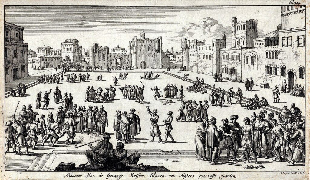 Un mercado de esclavos en Argel, 1684. (Jan Luyken / Museo Histórico de Ámsterdam)