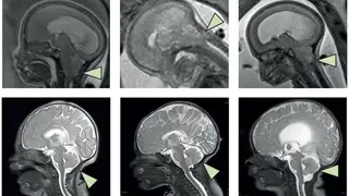 La flecha señala el rombencéfalo, la región del cerebro vinculada a la hormonaThe LancetThe Lancet